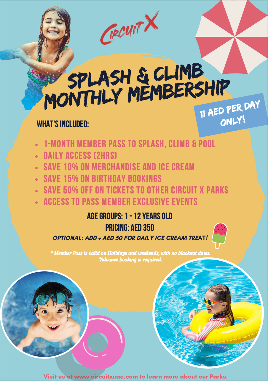 With our Monthly Membership, you can visit our Splash & Climb every day!